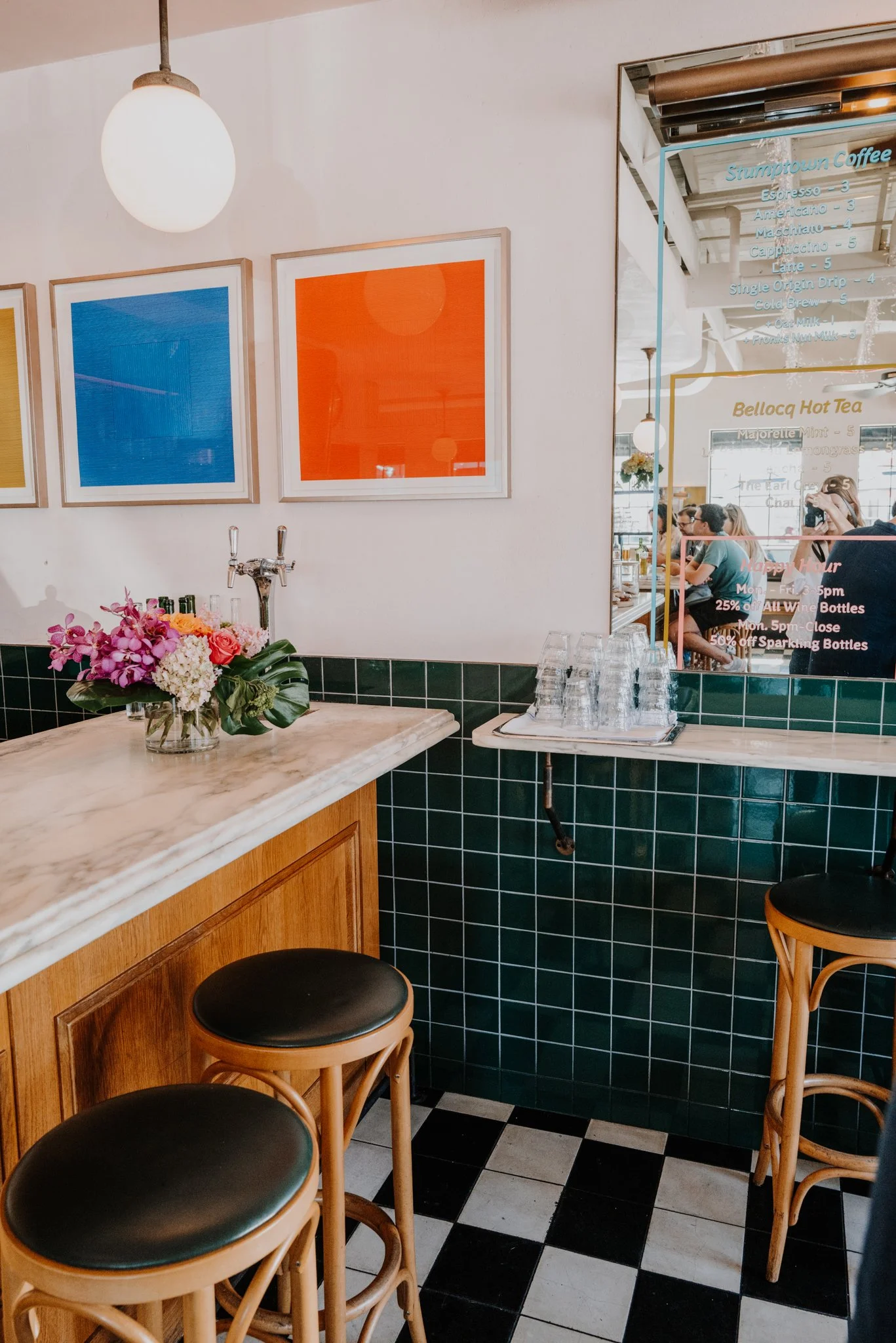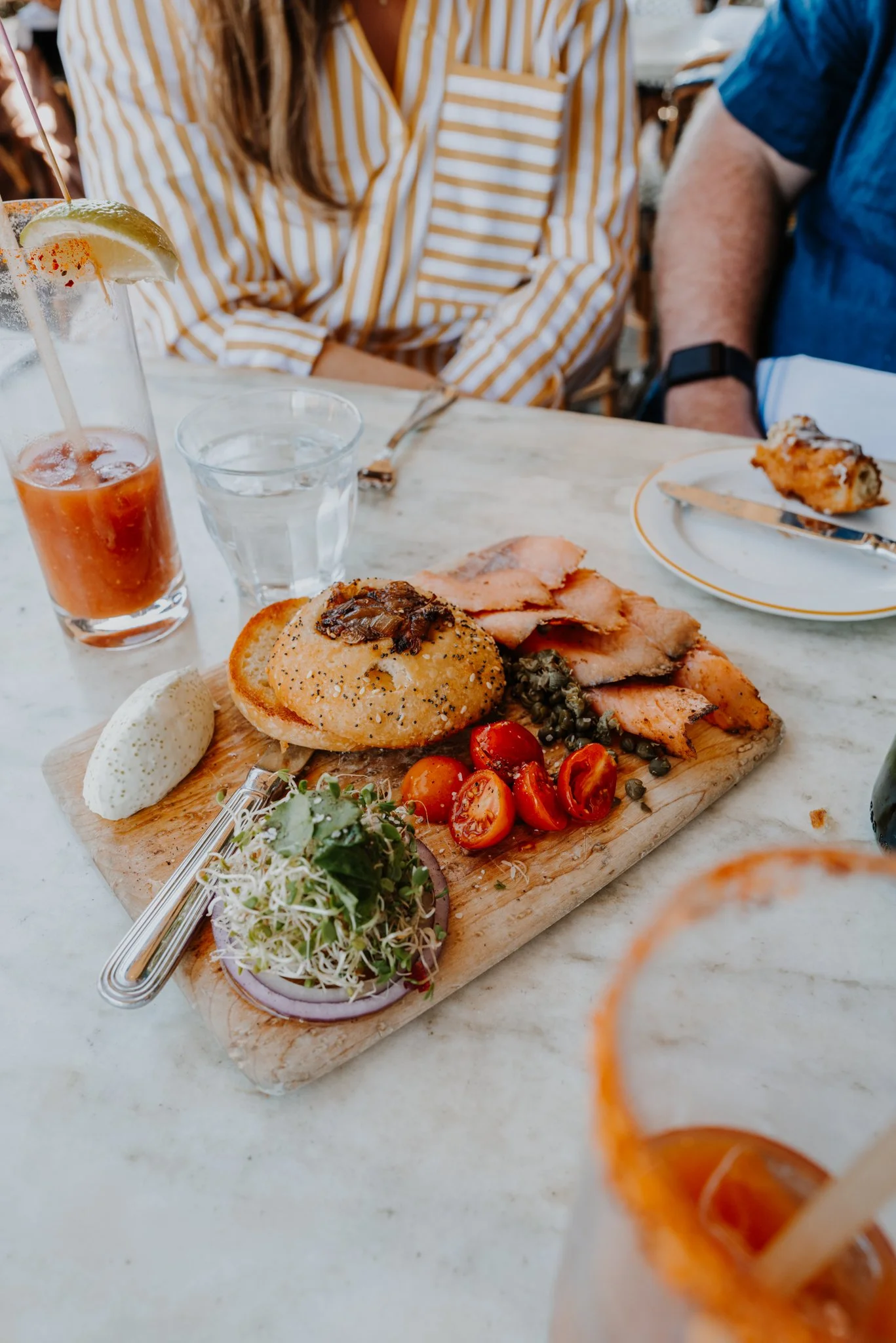 The first stop on my Austin culinary tour was June’s All Day, a cheery, diner-inspired institution on South Congress Ave. We went in for brunch and sat on the patio – something I had been dreaming of since boarding the plane in London! After a round of bloody marys for the table, we landed on ordering the buttermilk pancakes with apple compote and spiced brown butter, the appetizing board with pastrami smoked salmon and other nibbles, an order of the fried baby eggplants (a fave with the group!), and a side of fries. We sampled a french cruller as well – and I wish I had ordered one for the road!