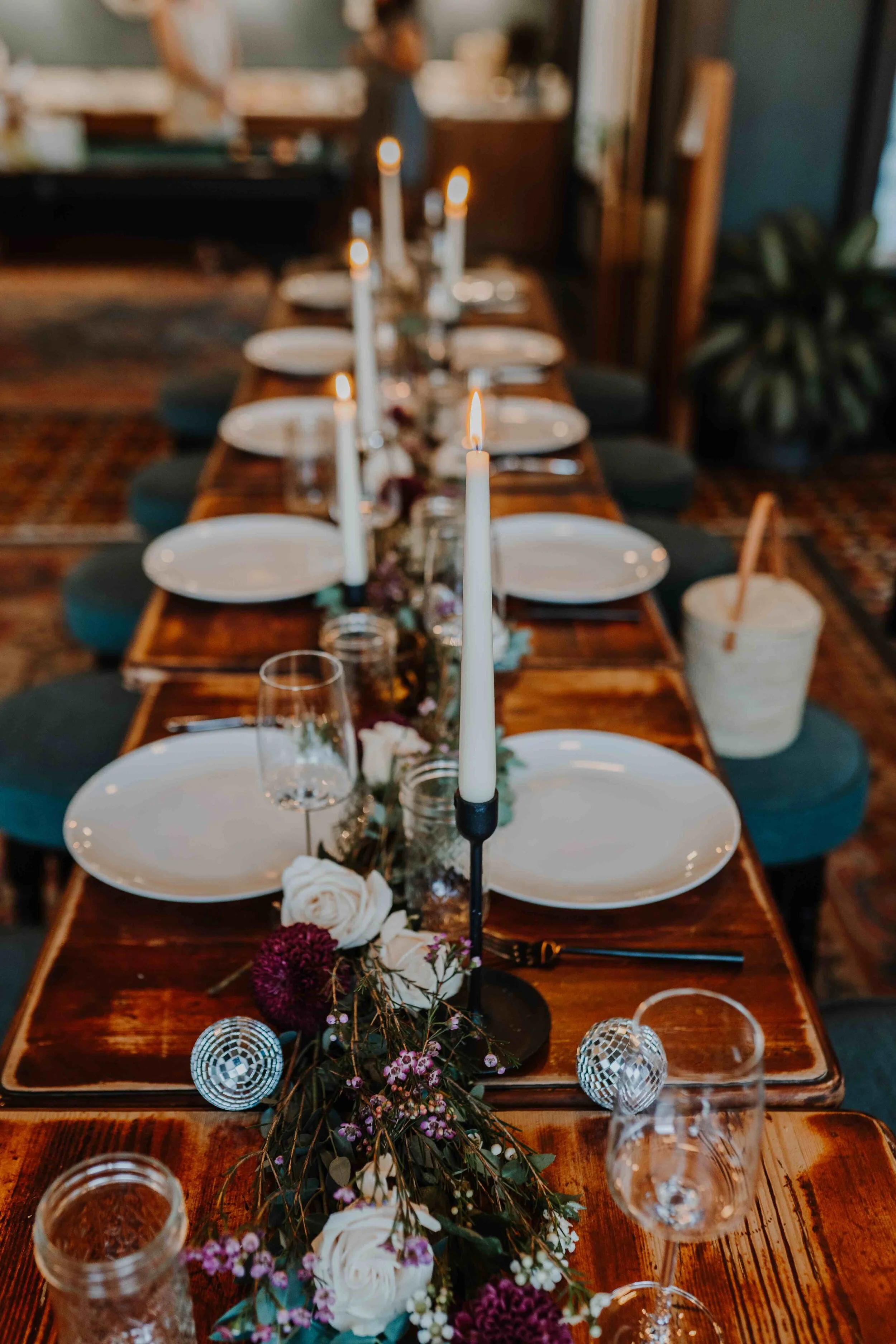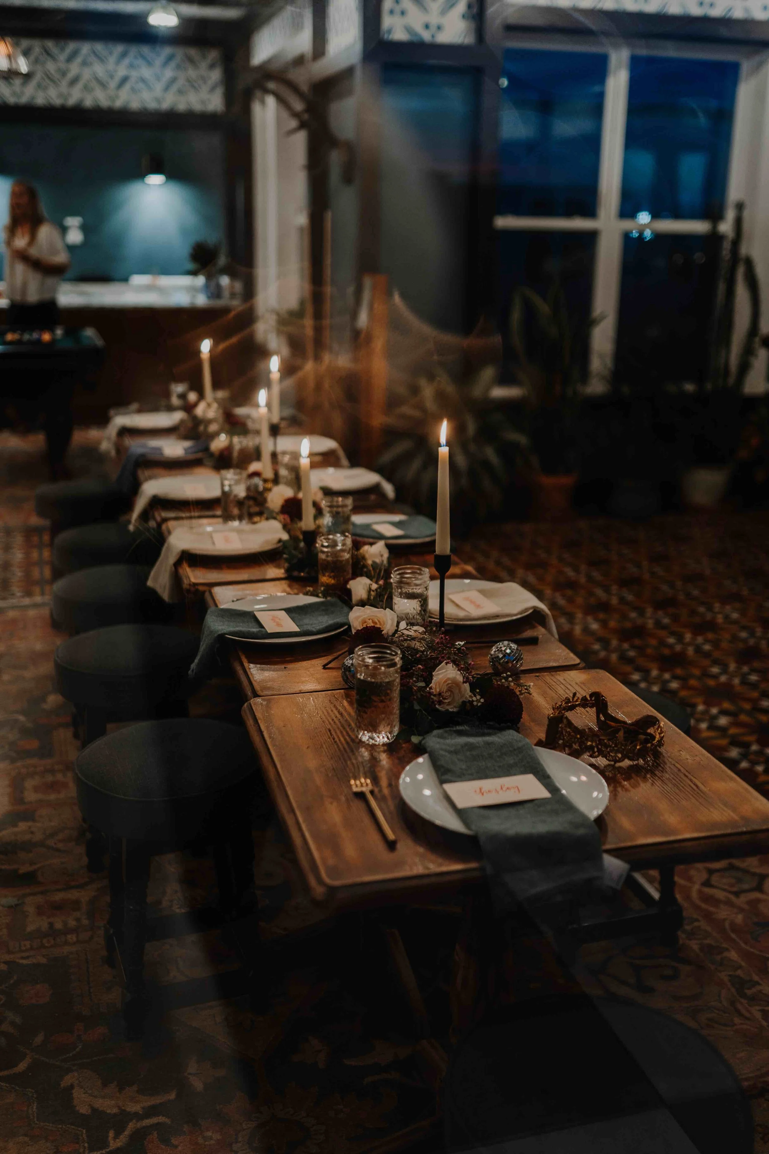 Originally I had planned to host my birthday dinner on my building’s rooftop, which has a gorgeous communal table and a view of the Capitol. But, when the weather decided to douse the city with a heavy rainstorm during the hour we needed to set the table, I was grateful that our building had a beautiful, indoor amenity space available as a backup for the festivities! We grouped small tables together to create one long table, which served as a canvas for flowers from Trader Joe’s, food from my favorite places for takeout in the city, and conversation that stretched well into the evening. I am grateful for the hands who stepped in upon arrival to make this vision come to life!